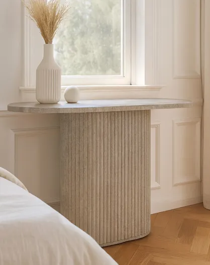 Inaya Ovale Konsole mit natürlichem Travertin-Effekt, 80 x 35 x 80 cm
