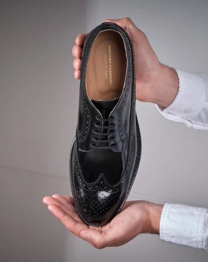 Schwarze Derbys aus Leder mit langer Zehenpartie und Blumenmuster