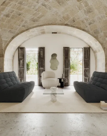 Jody Modulares 3-Sitzer-Sofa Anthrazitgrauer lockiger Stoff - 175x112x80