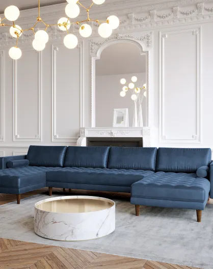 U Jakob Panoramasofa Mitternachtsblauer Samt - 335x85x77