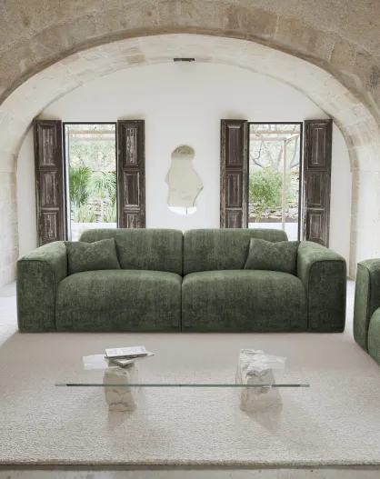 NOVA 3-Sitzer-Sofa aus gewebtem Samt olivgrün - 205x97x73