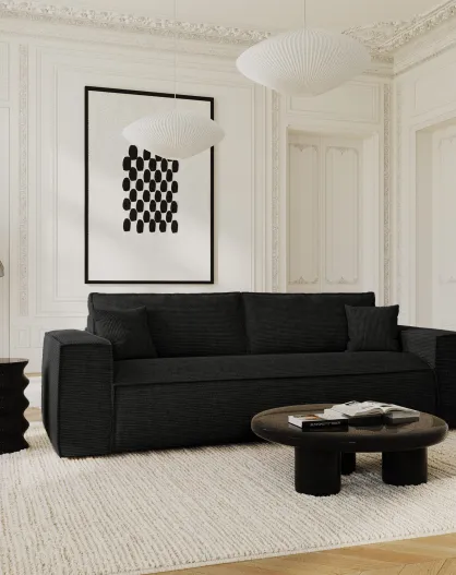 Express ausziehbare Sofamatratze 160 cm RUBY aus schwarzem Kord - 236x100x80