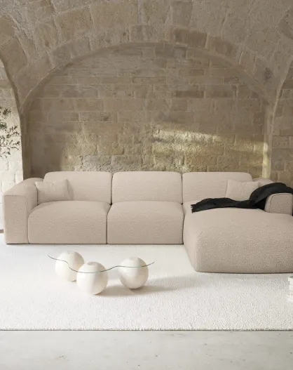 Wandelbares rechtes Ecksofa Express Dunlopillo Matratze 140 cm NOVA Beige Boucle Stoff — 299x165x73