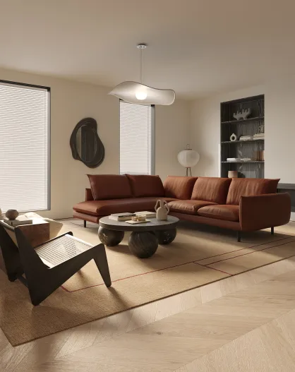 Isak Weitwinkelsofa links aus Kamelleder - 262x92x85
