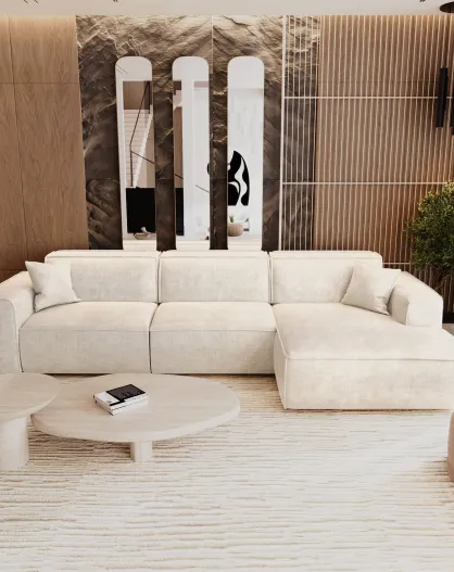 Rechtes Ecksofa mit 2 dekorativen Kissen RUBEN Velours Cream - 323x173x78