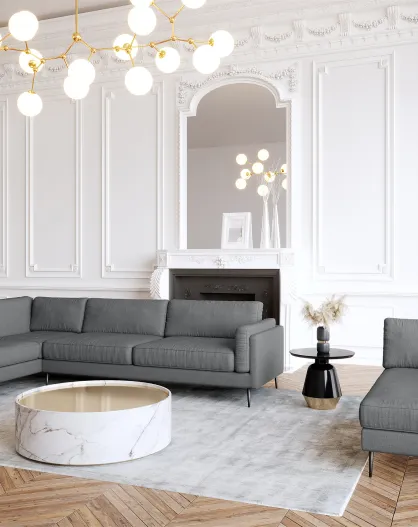 Mikael graues linkes Weitwinkel-Sofa aus Stoff - 271x200x80