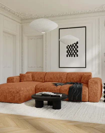 LIVA Wandelbares linkes Weitwinkelsofa aus Terrakotta geprägtem Samt — 283x180x73