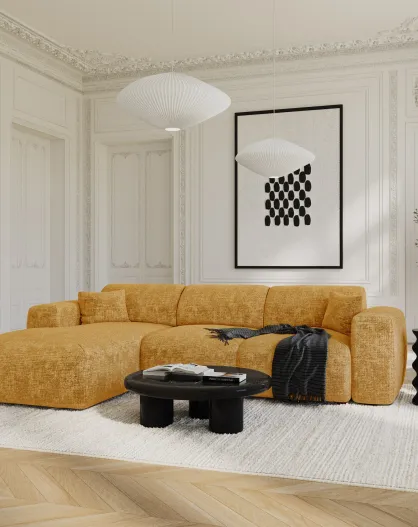 LIVA Wandelbares linkes Weitwinkelsofa aus Samt mit Senfprägung — 283x180x73