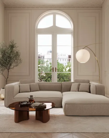 Rechtwinkliges Sofa 255 cm ROMY Weicher gewebter Duschstoff Taupe - 255x160x70