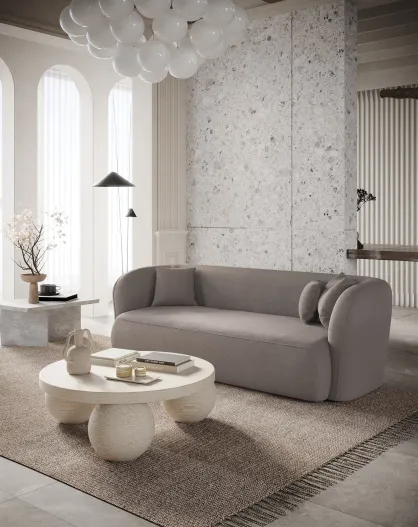 EMY 2-Sitzer-Sofa aus taupefarbenem Webstoff - 185x88x77