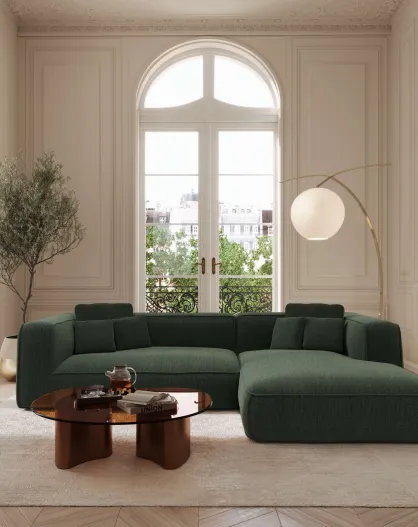 Rechtes Ecksofa 280cm ROMY Weathered Stoff Soft Touch khakigrün - 280x166x70