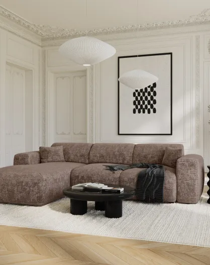 LIVA konvertierbares linkes Weitwinkelsofa aus taupefarbenem, geprägtem Samt — 283x180x73
