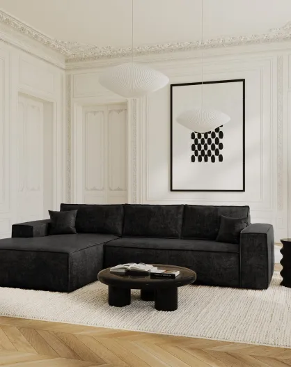 Linkes Ecksofa, umwandelbare Express-Matratze, 140 cm, RUBY-Matratze, dunkler anthrazitfarbener Samt — 320x165x80