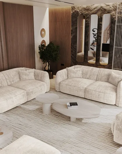 LIAM 4-Sitzer-Sofa aus cremefarbenem gewebtem Samt - 230x90x74