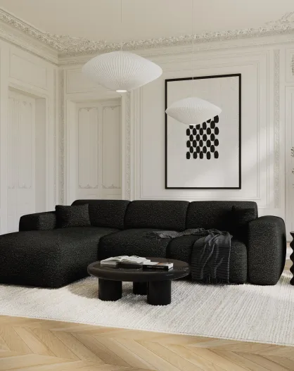 LIVA konvertierbares linkes Weitwinkelsofa aus geschlungenem Stoff Dunkles Anthrazit - 283x180x73