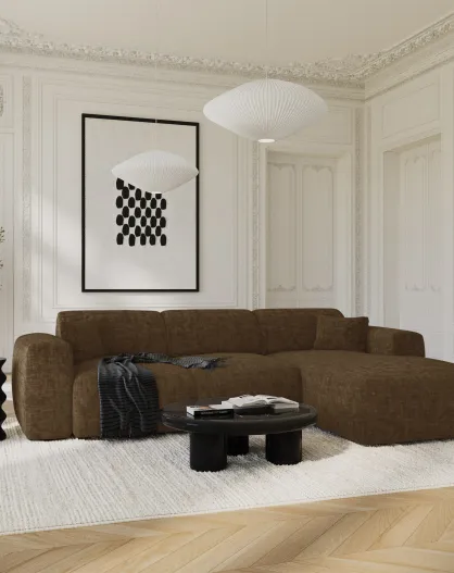 LIVA Wandelbares rechtes Weitwinkelsofa aus strukturiertem Samt, expressobraun — 283 x 180 x 73