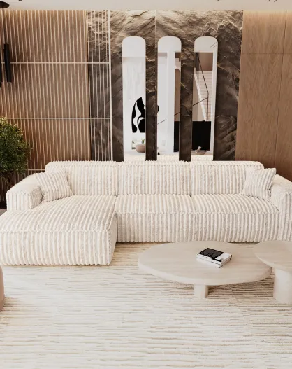 Linkes Ecksofa mit 2 dekorativen Kissen RUBEN Corduroy XXL Cream - 323x173x78