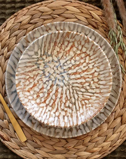 6 Suppenteller Bernstein 20,5 cm aus Steinzeug Braun und Beige