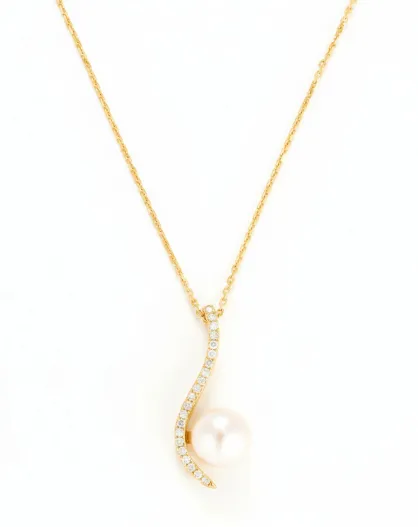 Sublime Wave Anhänger Weißperle Gelbgold Diamanten
