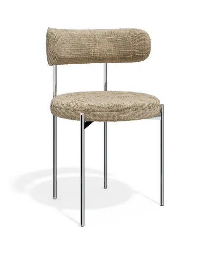 2 Stühle ADELE aus geflochtenem Samt, Beine aus taupefarbenem Chrom — 52x45,5x76,5 cm