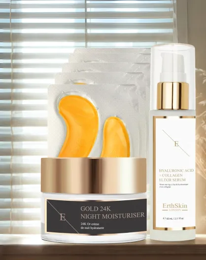Set Gold 24 Karat Nachtcreme + Augenkonturpflaster + Hyaluronsäure-Serum - 3 Stück