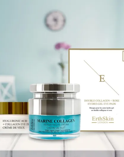 Set Kollagen-Nachtcreme + Anti-Aging-Augenkonturcreme + Augenkonturpflaster - 3 Stück