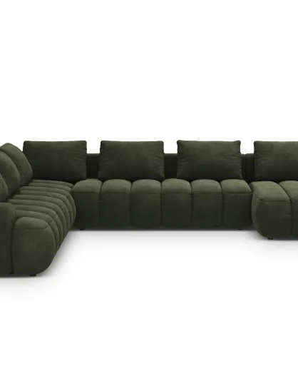 Kimi 6-Sitzer, umwandelbares Panorama-Ecksofa aus Samt und grüner Kimi 6-Sitzer-Koffer, 346 x 270 x 84 cm
