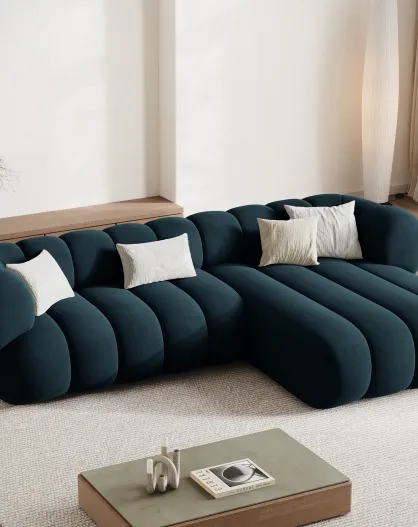 Koge Ecksofa für 5 Personen, Samt, rechts, 270 x 165 x 70 cm, Petrolblau