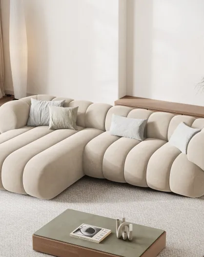 Koge Ecksofa für 5 Personen, Samt, links, hellbeige, 270 x 165 x 70 cm