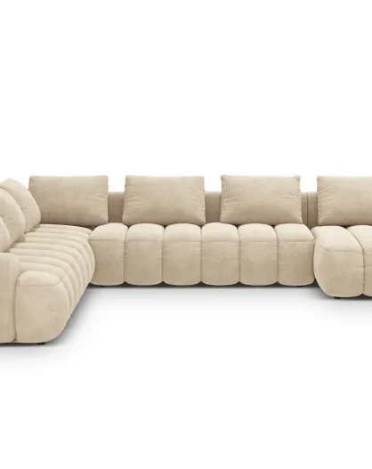 Kimi 6-Sitzer, ausziehbares Panorama-Ecksofa aus Samt, mit Kofferraum, 346 x 270 x 84 cm, hellbeige