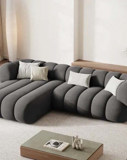 Koge Ecksofa für 5 Personen, aus grauem Samt, links, 270 x 165 x 70 cm