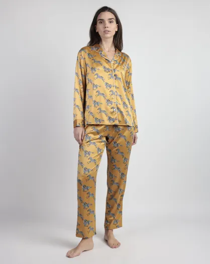 Luxuriöser Pyjama aus ockerfarbenem Satin im Zebra-Stil