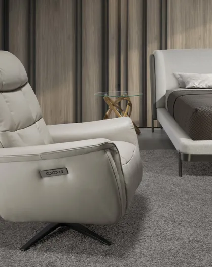 Relax Drehsessel aus Leder mit Armlehnen grau/schwarz - 54x85x80 cm
