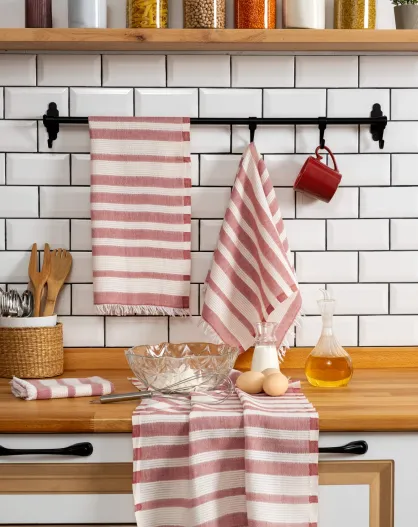 4 rote Fliesenhandtücher - 45x65 cm