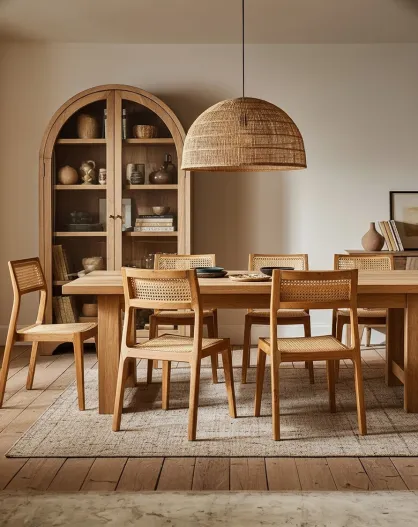Baldachin — 2 Esszimmerstühle aus massivem Teakholz und Rattan — 44x48x81 cm