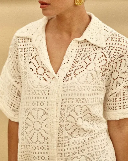 Ecrufarbenes Oversize-Hemdkleid Rilowa