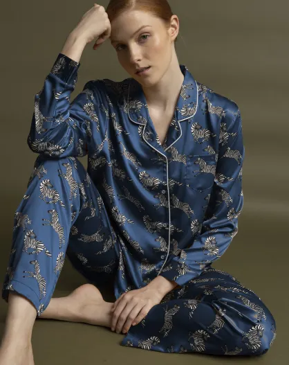 Blaugoldener offener D-förmiger langer Zebra-Pyjama