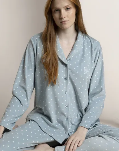 Warmer offener Pyjama mit Tupfen und Spitze G Aquagrün
