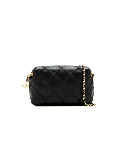 Fleming schwarze Schultertasche aus gestepptem Leder - 12x19x7 cm