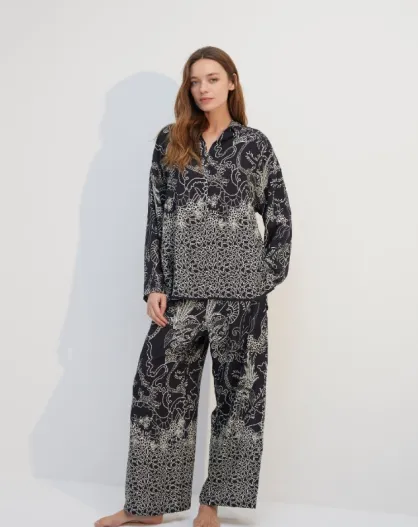 BJM-1756 Pyjama-Set mit Knopfausschnitt, schwarz/weiß