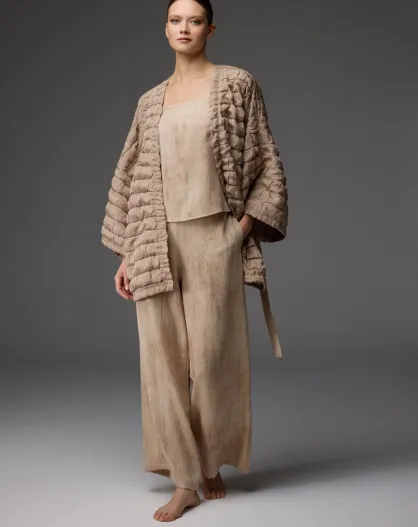 BM-1811 Pyjama-Set, 3-teilig, cremefarben/kaffeebraun