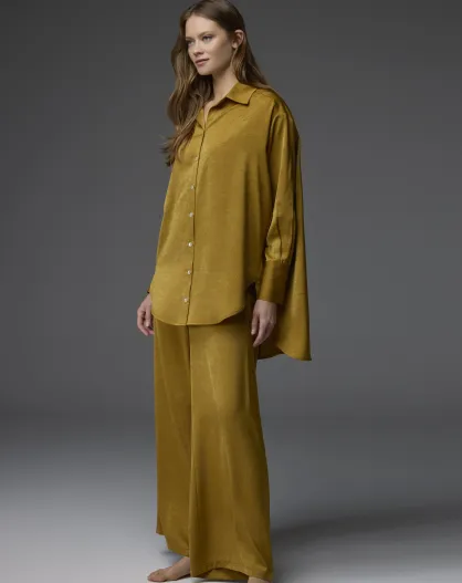 BM-1818 senffarbenes Jacquard-Pyjama-Set mit Manschette