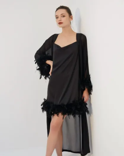 BJM-1758 schwarzes 6-teiliges flauschiges Brautset