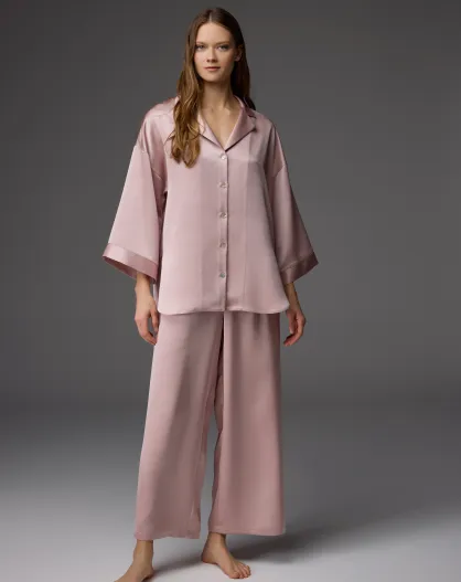 BM-1820 Pyjama-Set aus puderfarbenem Perlmutt mit Knöpfen und Hemdkragen