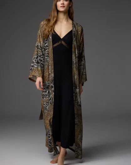 BM-1851 schwarzes Set aus Bademantel und Nachthemd mit Riemen mit Spitzenbesatz