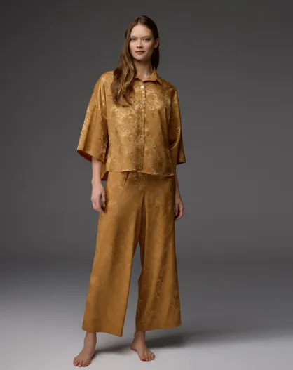 BM-1806 Schlafanzug-Set aus senffarbigem Jacquard