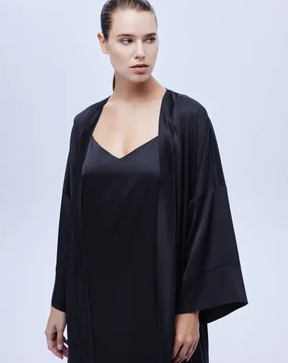 BJM-1631 Set aus Satin mit Nachthemd und Bademantel Schwarz BJM-1631