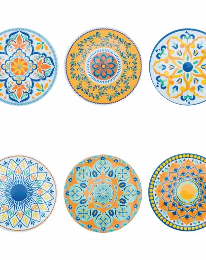 6 mehrfarbige Sicilia Plastikteller - D.33 cm