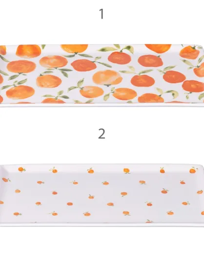 4 More Amor rechteckige Porzellanteller weiß/orange - 31,5x16,5 cm