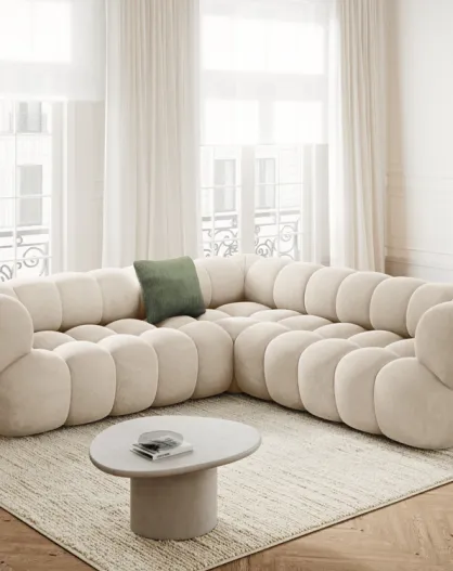 Hellbeiges modulares Ecksofa aus Samt Maurice - 245x245x70 cm